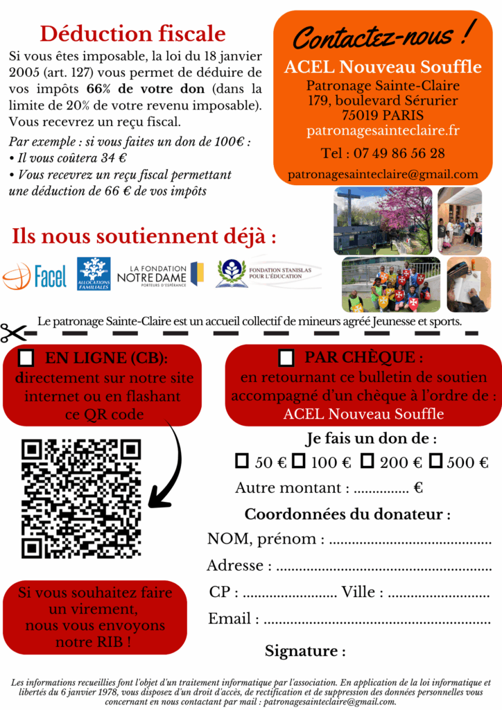 • Vous recevrez un reçu fiscal permettant une déduction de 66 € de vos impôts